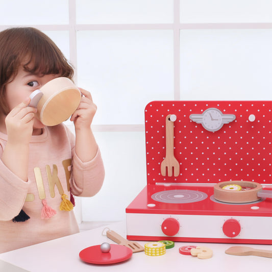 Les cuinetes de fusta, juntament amb els seus estris, aliments de joguina i accessoris com davantals o olles, són una opció fantàstica per desenvolupar la seva imaginació i ampliar el seu vocabulari.