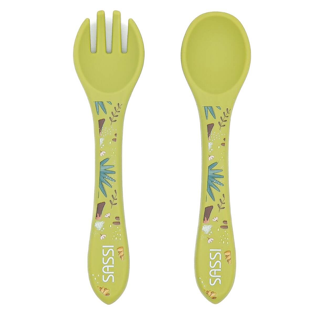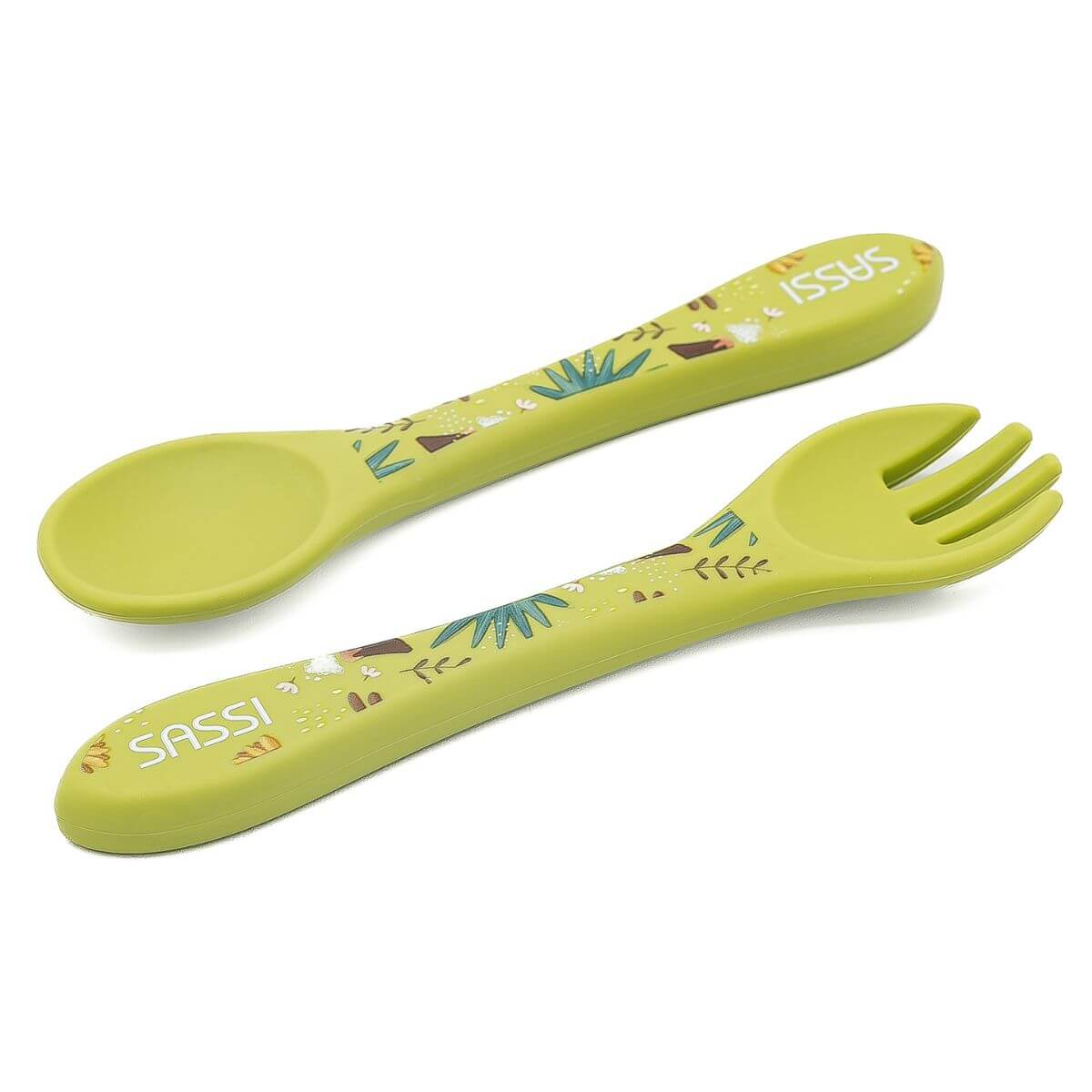 Flexibles, agradables al tacte i decorats amb e Dinosaure Cracky, estan pensats perquè els més petits aprenguin a menjar sols.