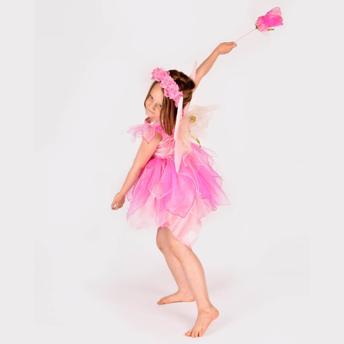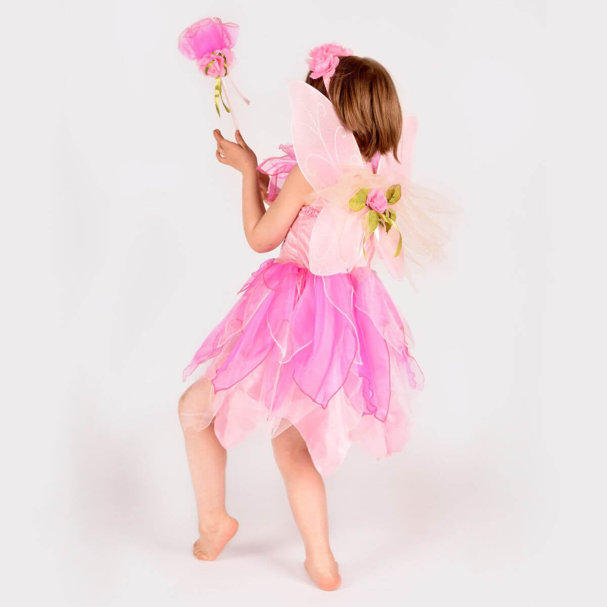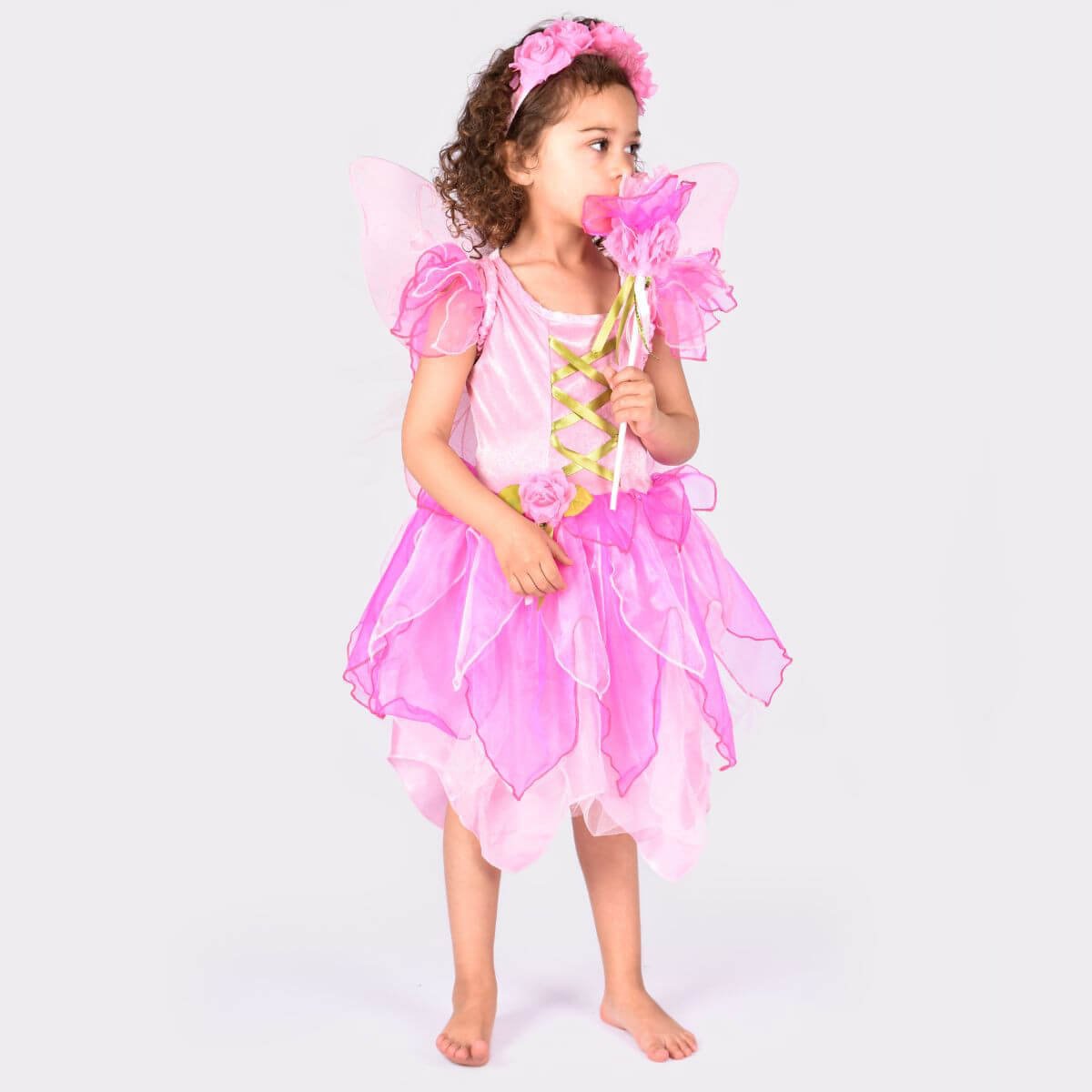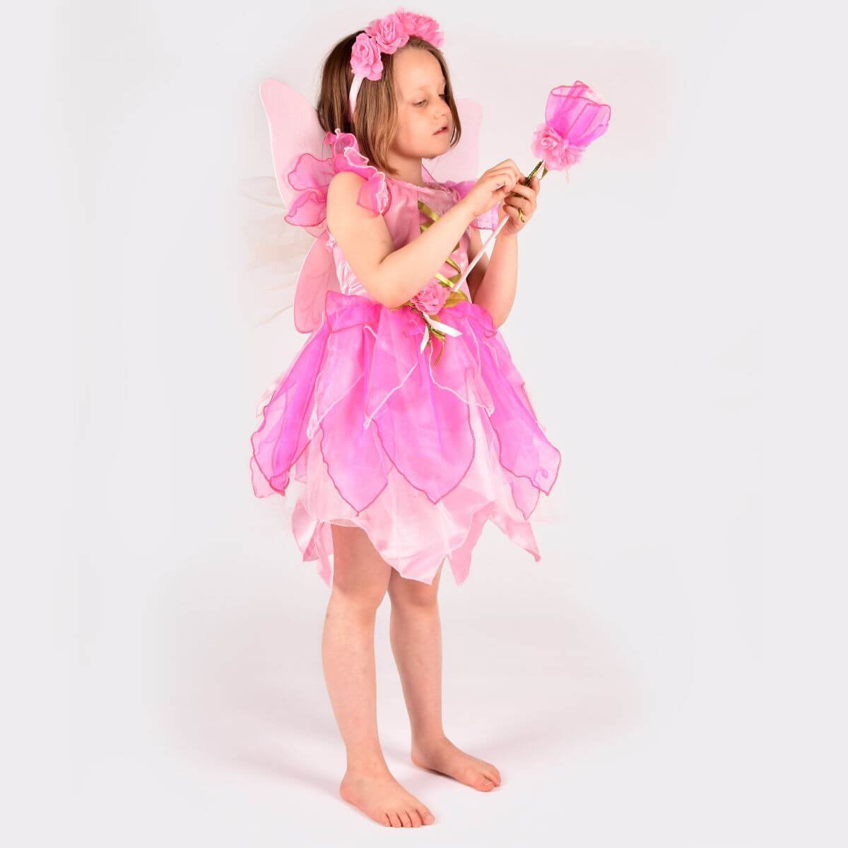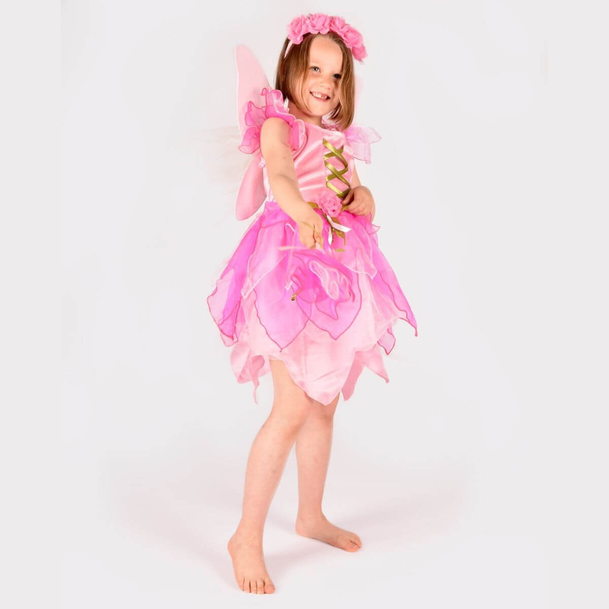 Preciós disfressa de fada rosa que inclou vestit, vareta, diadema i ales de fada.