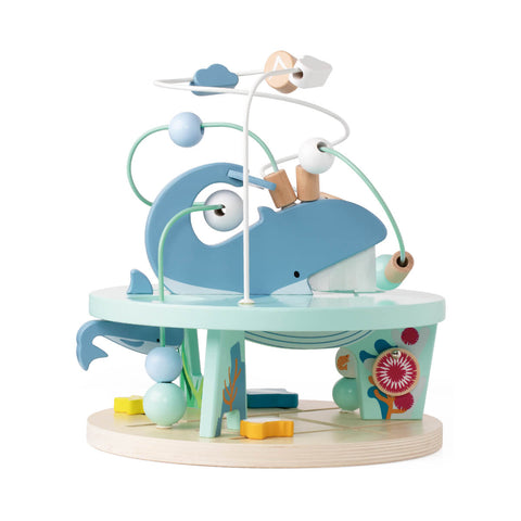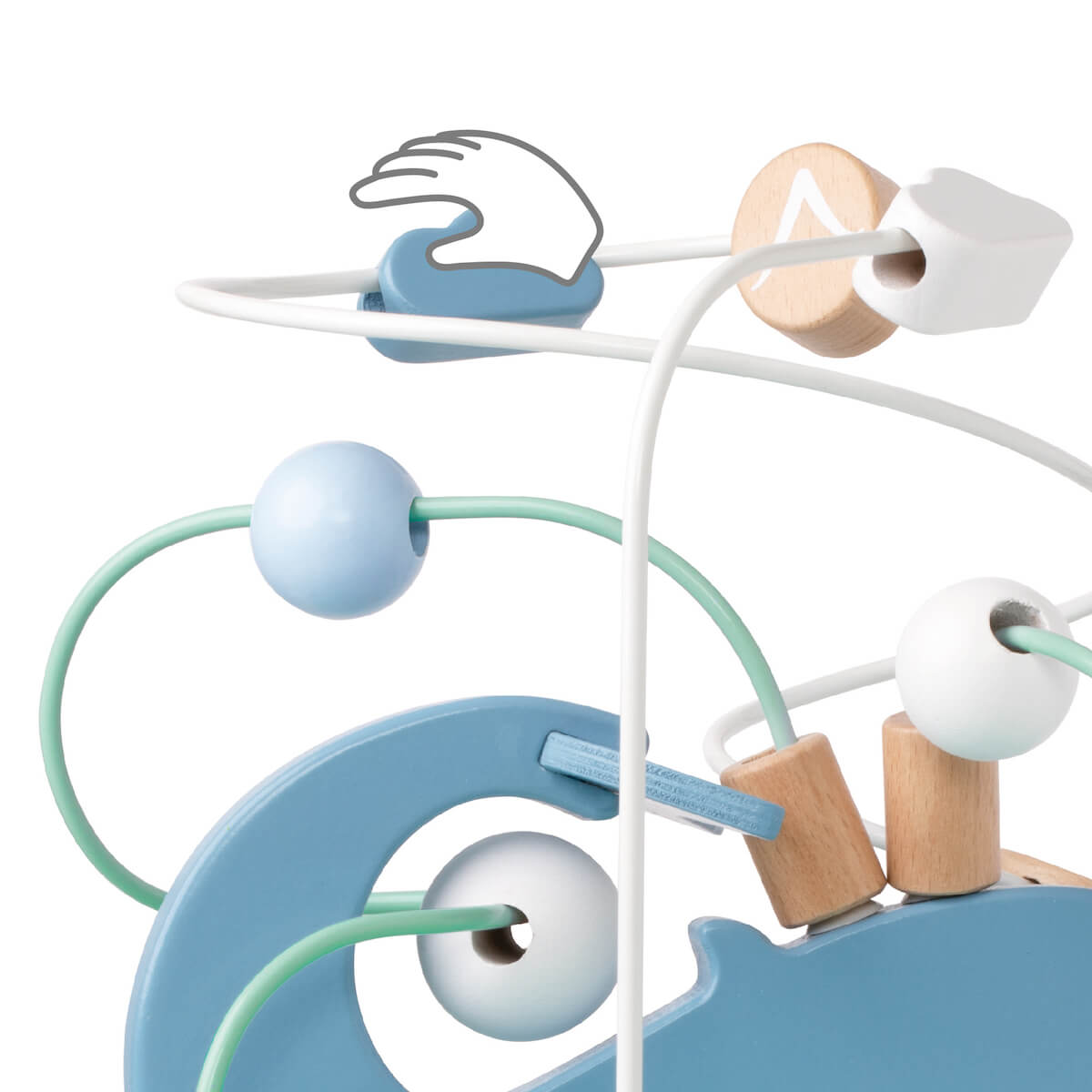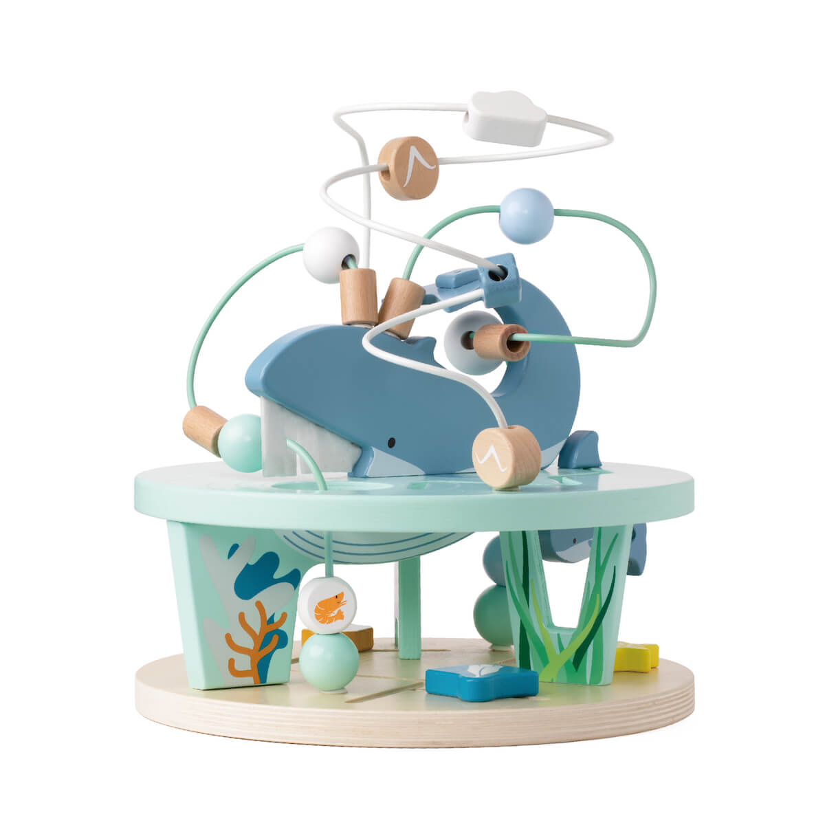 Laberint de boeltes amb temàtica oceànica: mou les boles al voltant de la balena, sobre o sota el mar. La cria de balena neda al voltant de la seva mare i passa entre algues, peixos i altres elements marins. Dissenyat per millorar la motricitat fina, la concentració i el reconeixement de colors.