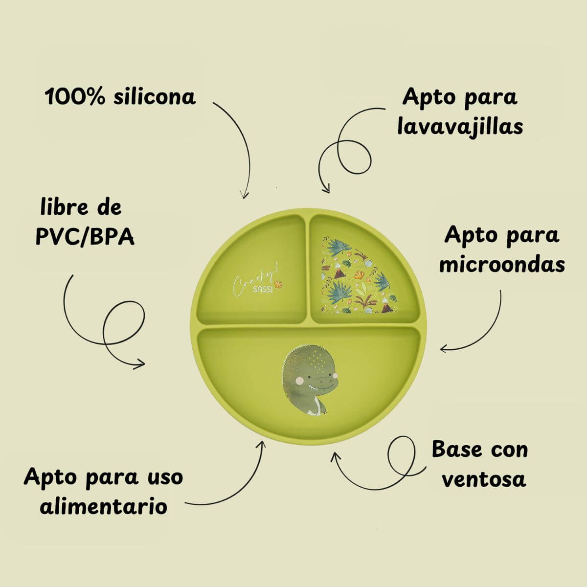 Plat amb compartiments i base antilliscant amb ventosa per a més seguretat.
