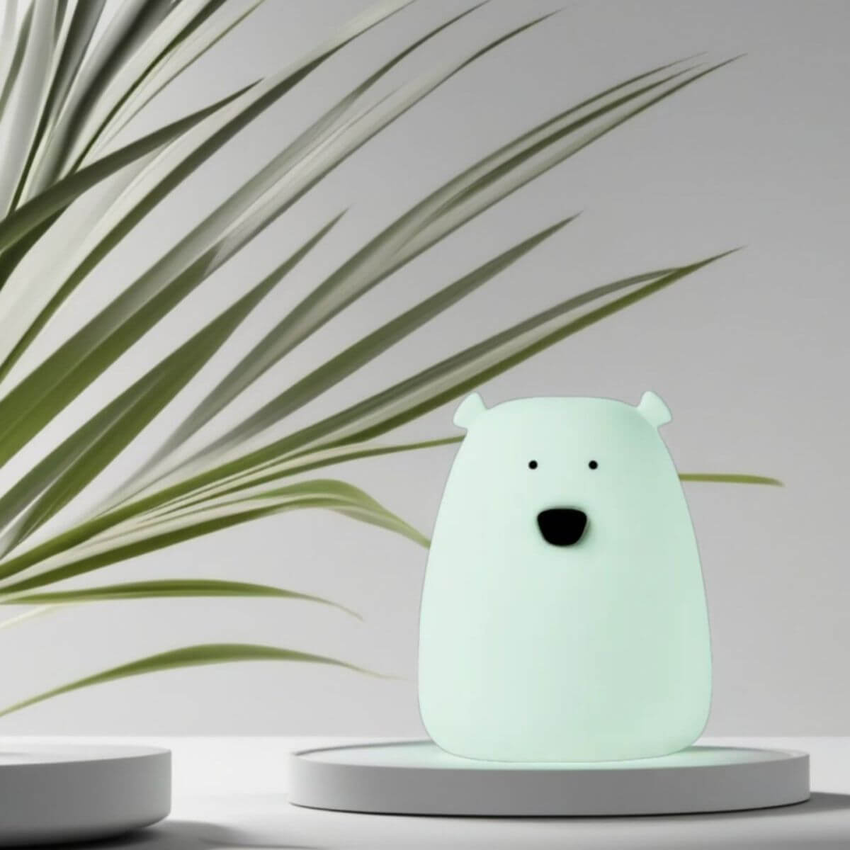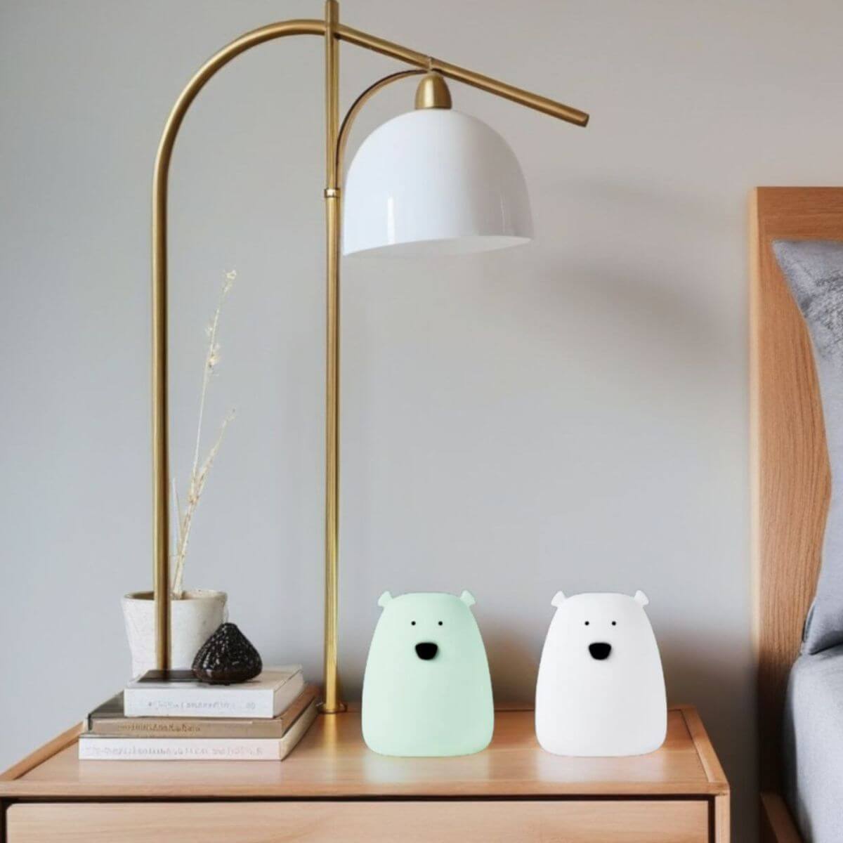 Set de 2 mini llums de silicona en colors blanc i blau àrtic. Versió mini dels llums d'ós de la marca Rabbit & Friends. El llum blanc ofereix canvi de color i llum càlida; la menta il·lumina amb un to suau. Es carreguen per USB-C, incorporen apagat automàtic i són fàcils de transportar, perfectes per a viatges i dormir fora de casa.