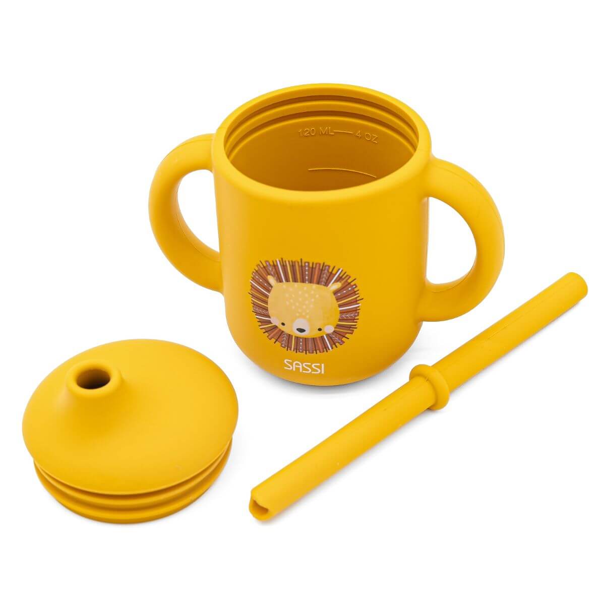 Tassa de silicona amb nanses, tapa i palleta per beure de forma independent.