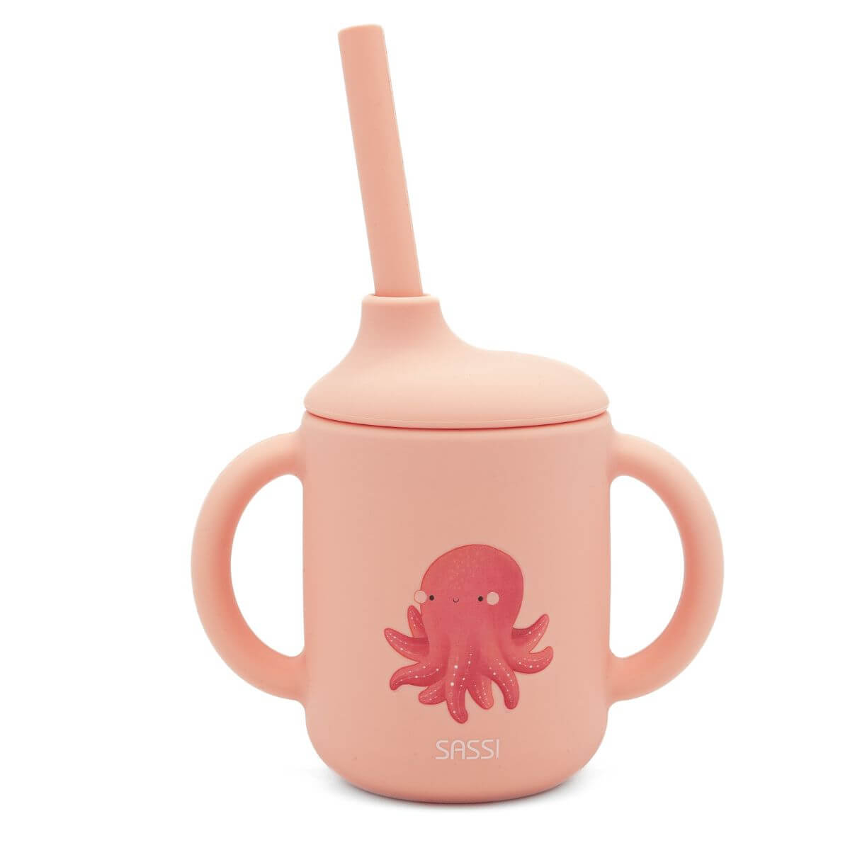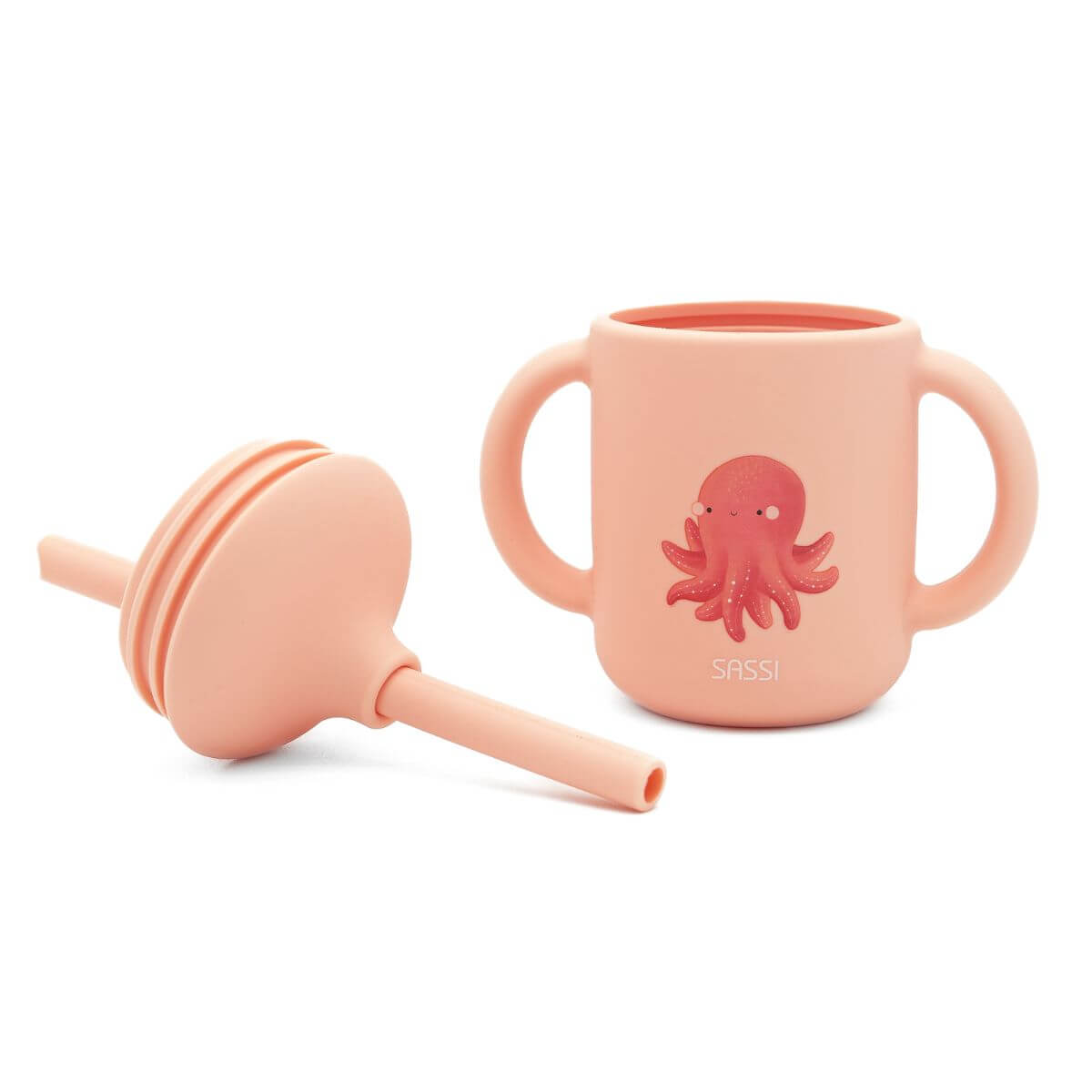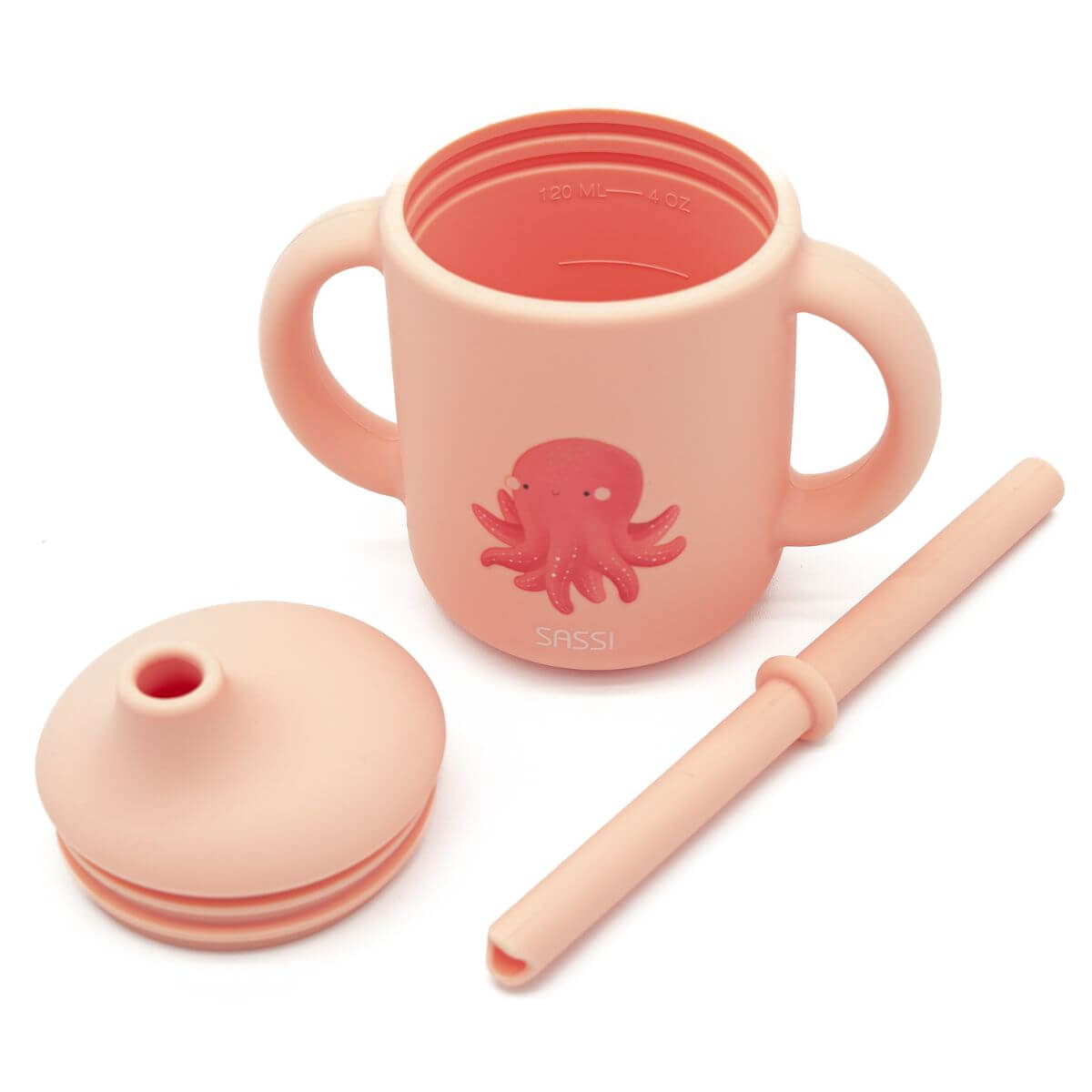 Tassa de silicona amb nanses, tapa i palleta per beure de forma independent.