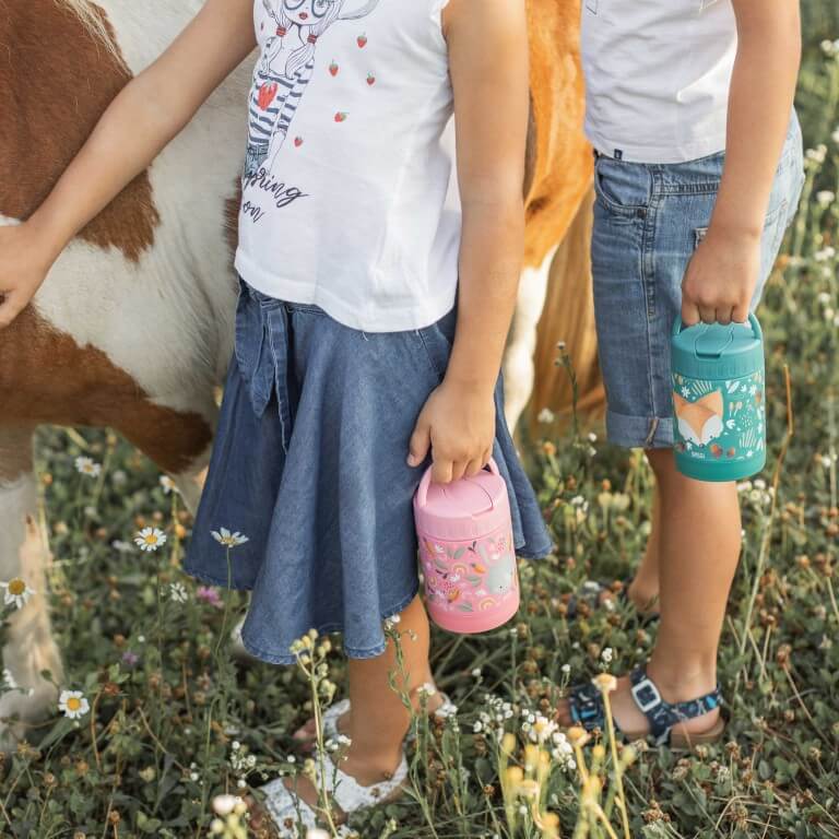 Termo de menjar infantil d'acer inoxidable amb doble paret - manté calent o fred durant hores. Inclou cullera, tancament hermètic i és apte per a rentaplats. Amb Fluffy el conill de la col·lecció SASSI.