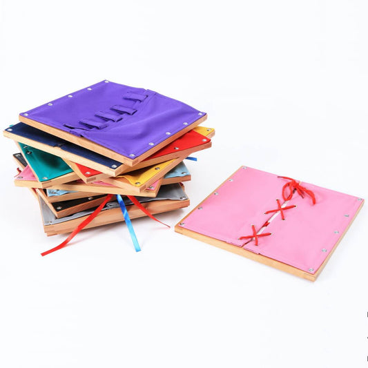 Bastidor de madera con cordones de zapato Montessori