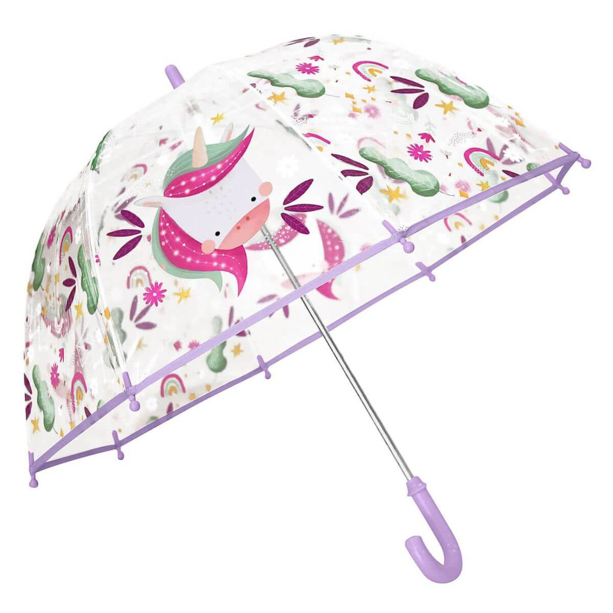 Paraguas infantil transparente decorado con el simpático Unicornio Sparkly de la colección SASSI.