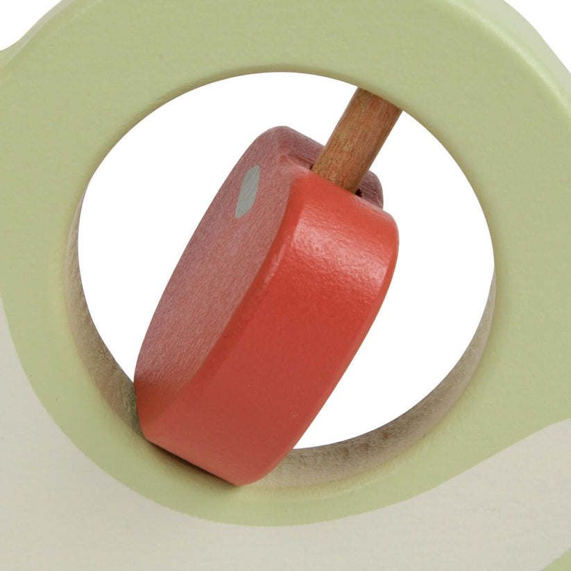 Cada vez que lo agite, el suave y dulce tintineo de la manzana en su interior capturará su atención, estimulando su sentido del oído y fomentando la coordinación ojo-mano.